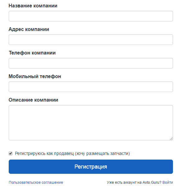 2) Откроется форма регистрации https://avto.guru/user/registration.